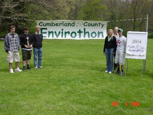 On May 7, 2002, 85 students participated in the Cumberland County Envirothon held at Pine Grove Furnace State Park. The students represented the following High Schools; Big Spring, Carlisle, Cumberland Valley, Shippensburg, and a new school this year, Cedar Cliff. The students were tested at five stations, each dealing with a different environmental subject, which were administered by appropriate agency personnel and volunteers. The stations and agency staff were: Aquatics, Stanley Shive, Pennsylvania Fish and Boat Commission, Craig Mitchell, Cumberland County Conservation District, and Bill Porter; Forestry, Bruce Kile and Neal Mishler, Department of Conservation and Natural Resources, Bureau of Forestry; Soils, Deb Kammerer, Brad Beaver and Juan Carlos Hernandez, Natural Resources Conservation Service; Wildlife, Tim Grenoble and Ed Steffan, Pennsylvania Game Commission; Current Issue which was Introduced Species and their Effect on Biodiversity, Amy Skvarka, Cumberland County Conservation District. These agency staff and volunteers are an integral component to the success of the Envirothon. This year's competition was extremely close and was determined by only two points. The third place team was the Hellbenders from Carlisle, with a score of 323, the second place team was the Envirominds from Cumberland Valley, with a score of 363, and the winning team was a first year participating team from Cedar Cliff, Jack Rabbits Slim, who earned a score of 365. The advisor of the winning team is Justin Weaver, who teaches Environmental Biology at Cedar Cliff High School. The competition this year was a success and enjoyed by all participants and advisors. Excel table of 2002 Results